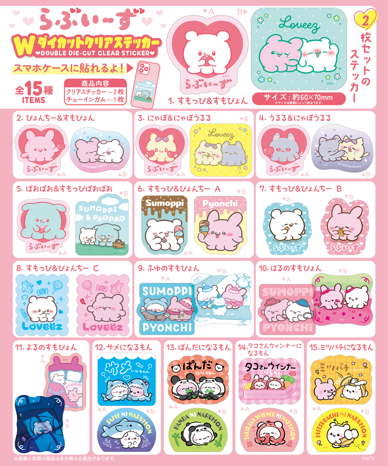 • らぶいーず<br>Wダイカットクリアステッカー